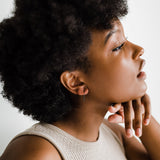 the arch earring is an easy classic. simple enough to wear with other piercings, but of course, can hold its own. if you’d like, gently bend the ends together to create an upside-down dew drop that will never leave your ear.