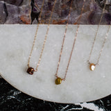 1 keshi pearl is wire-wrapped onto 16” of chain. This necklace should fall right in the middle of your clavicle. very cute on its own or as part of a layered look